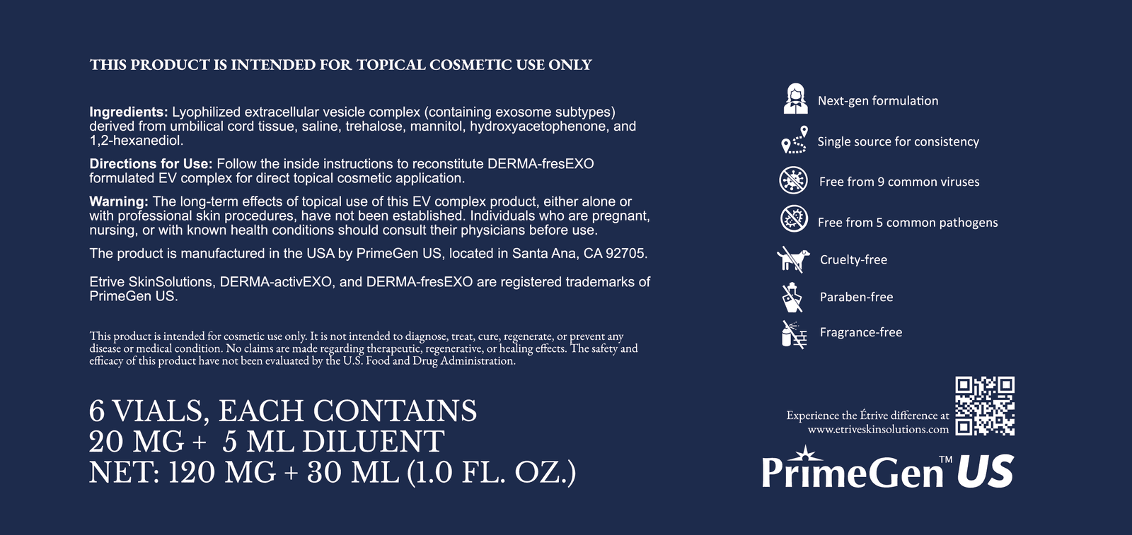 We've applied our proprietary stem cell technologies to formulate DERMA-activEXO and DERMA-fresEXO and develop the Étrive Platinum and Gold Aesthetic Solutions.