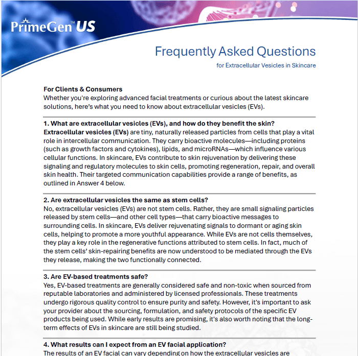 EVs have only emerged in the fields of skin and hair care in recent years. As skincare ingredients, EV-based products deliver a wide range of bioactive molecules—including growth factors, cytokines, and microRNAs. These molecules may play roles in skincare by supporting younger appearance.