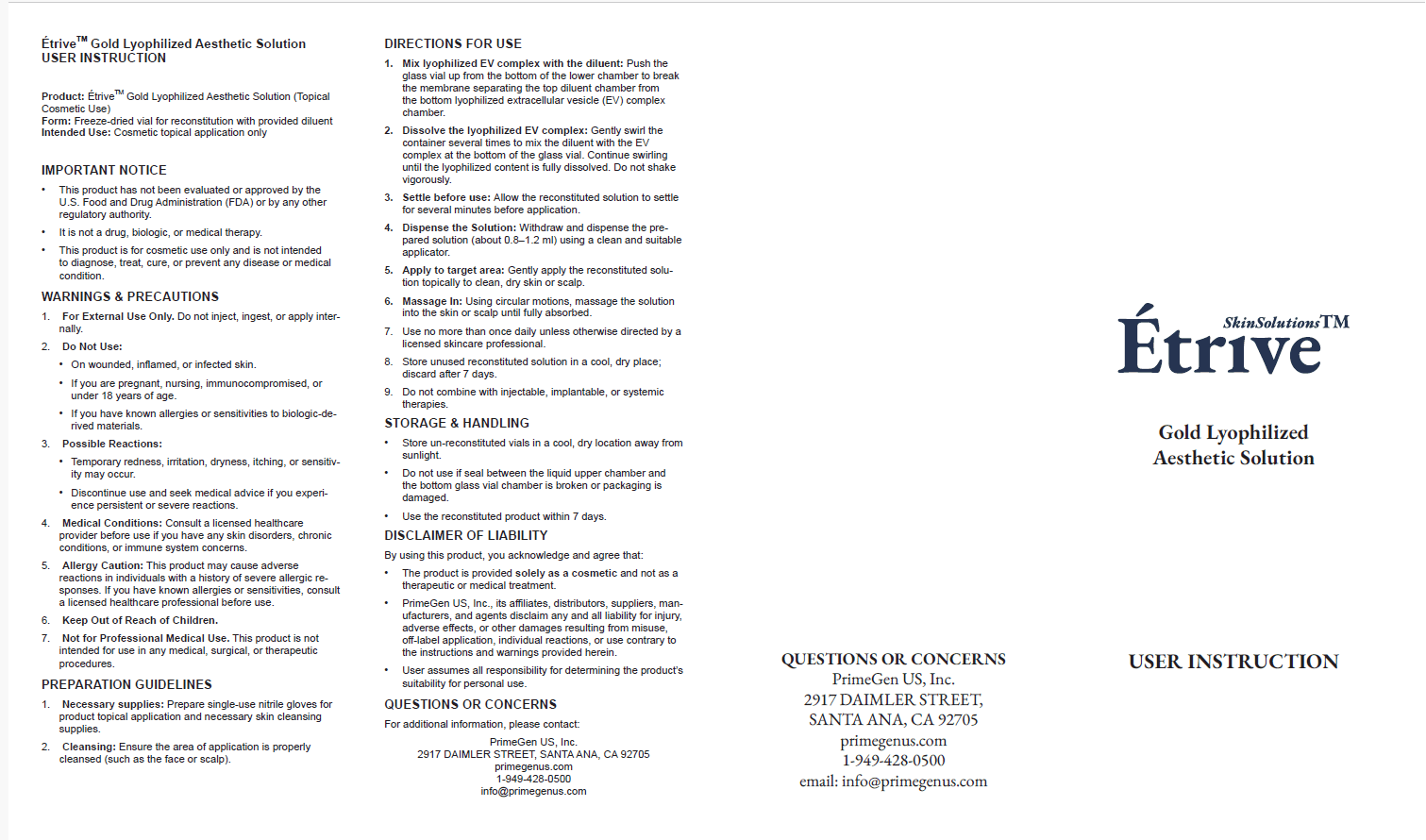 Etrive Platinum and Gold Aesthetic Solutions are made from a single sourced human umbilical cord tissue-derived mesenchymal stem cells (hUC-MSCs)